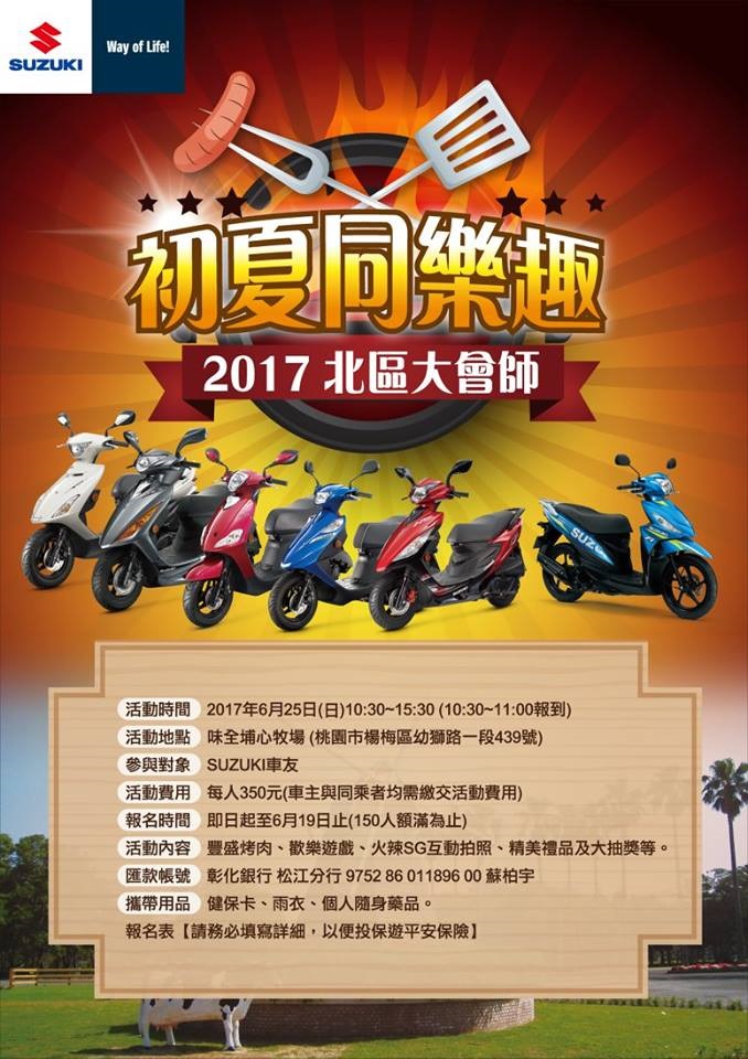 感謝各位車友對於本活動的熱烈反應,也收到許多車友的建議。 考量避開部分車友週六必需上班,及暑假的即將到來, 我們將活動改期至6/25(日) 以讓更多的車友能盡情參加! 註:已報名車友若當日不便參加,需取消報名退費,即日起可私訊粉絲團, 我們將盡速辦理退款。.
