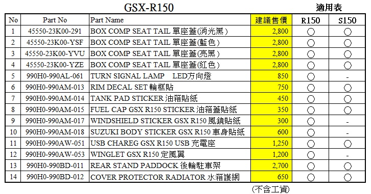 台鈴SUZUKI 將正式導入世界級產品GSX-R150/S150 的原廠精品,