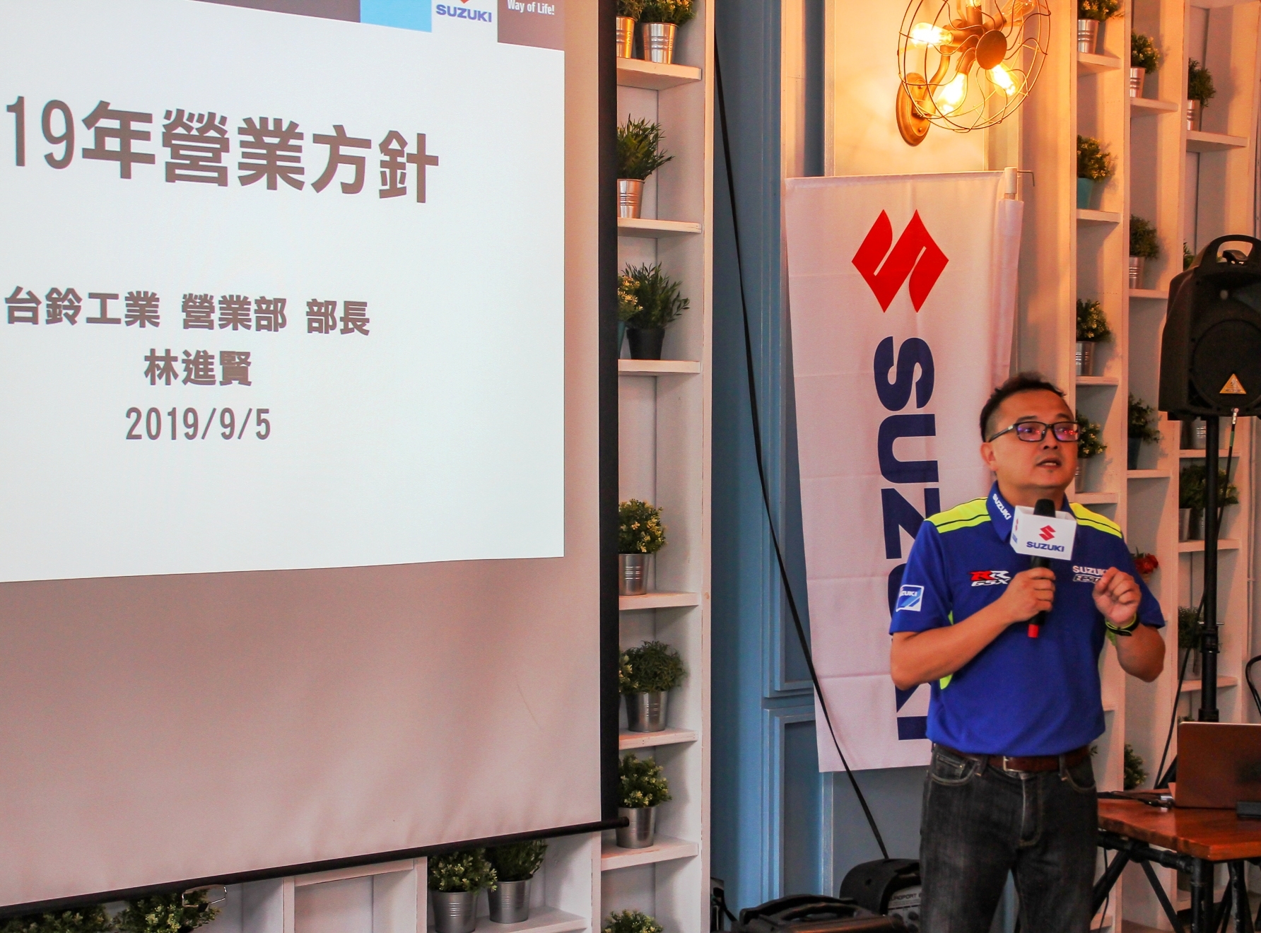 台鈴工業營業部部長 林進賢先生說到:「2019年台鈴SUZUKI展開了年輕化的品牌DNA行動,以年輕、有型、潮流佐以日本科技、品質、設計的產品,導入台灣市場,如GSX-R/S150、Swish125 MotoGP特仕版、刀(發音KATANA)、BURGMAN200等等,更陸續更新通路識別SUZUKI CI示範旗艦店,給台灣消費者全新台鈴SUZUKI不同的面貌」