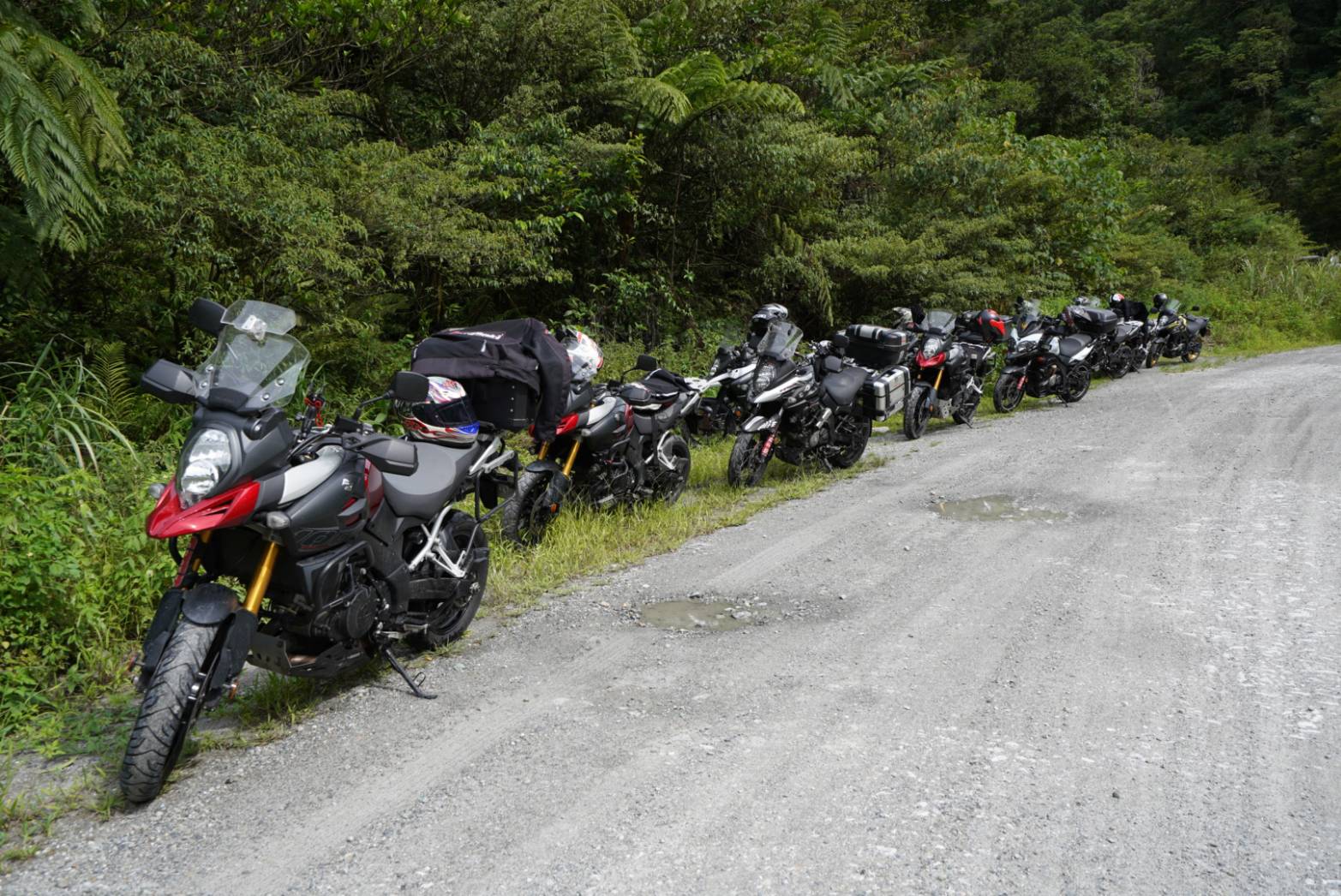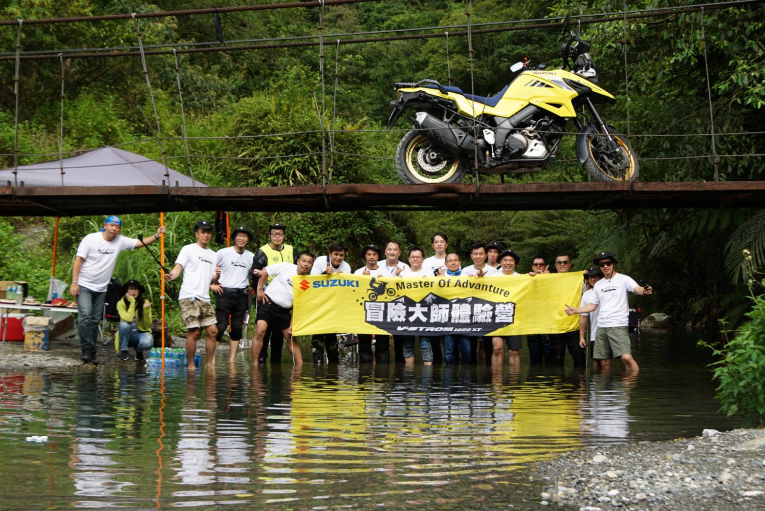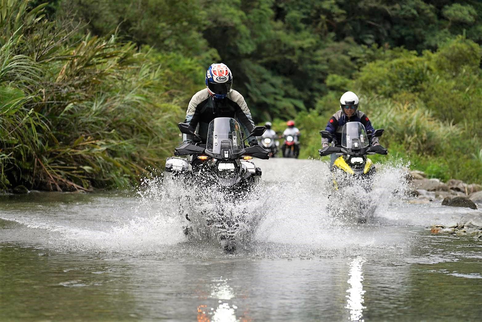 本次活動採精緻化、小班制實施,透過現役V-Strom車主投稿與愛車出遊的自傳,精挑細選具有林道騎乘經驗,且熱愛V-Strom的10位車主,第一天來到宜蘭的武荖坑林道,除了崎嶇不平的碎石路面外,沿途亦有四段涉水路面,讓車友體驗”撩K”的快感,台鈴官方也貼心於溪邊設置補給站,提供西瓜與壽司,讓參加的車友們能夠享受山林間的寧靜與溪水的沁涼感受,中午來到蘇澳蘭陽隧道,筆直的路況最適合體驗V-Strom 1050XT所搭載的”定速巡航系統”。