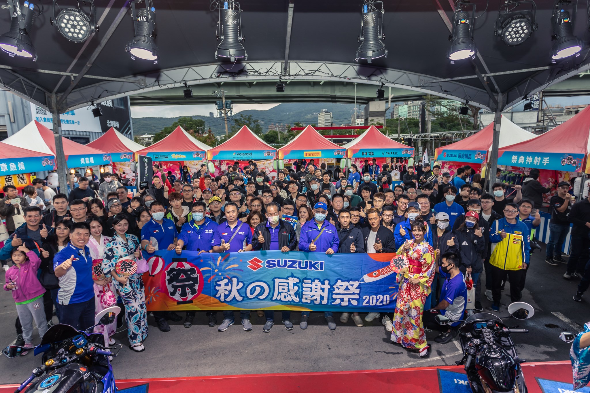 2020年11月28日台灣台北市 - 台鈴SUZUKI為歡慶日本SUZUKI本社創社百周年,以及於近日拿下世界級摩托車運動賽事MotoGP世界冠軍,特別舉辦"SUZUKI秋之感謝祭",回饋SUZUKI大小車全車系的車主朋友,現場不只有日式美食與日式遊戲攤位,更有眾多精品廠商展出,以及美味的燒烤、烤全豬,與樂團、火辣DJ熱情演出,加上許多好禮摸彩,最後更端出當家最新速克達—Saluto 125作為最大獎,本次也特別規劃了愛車選美活動讓車友們驚呼連連,回憶滿載。