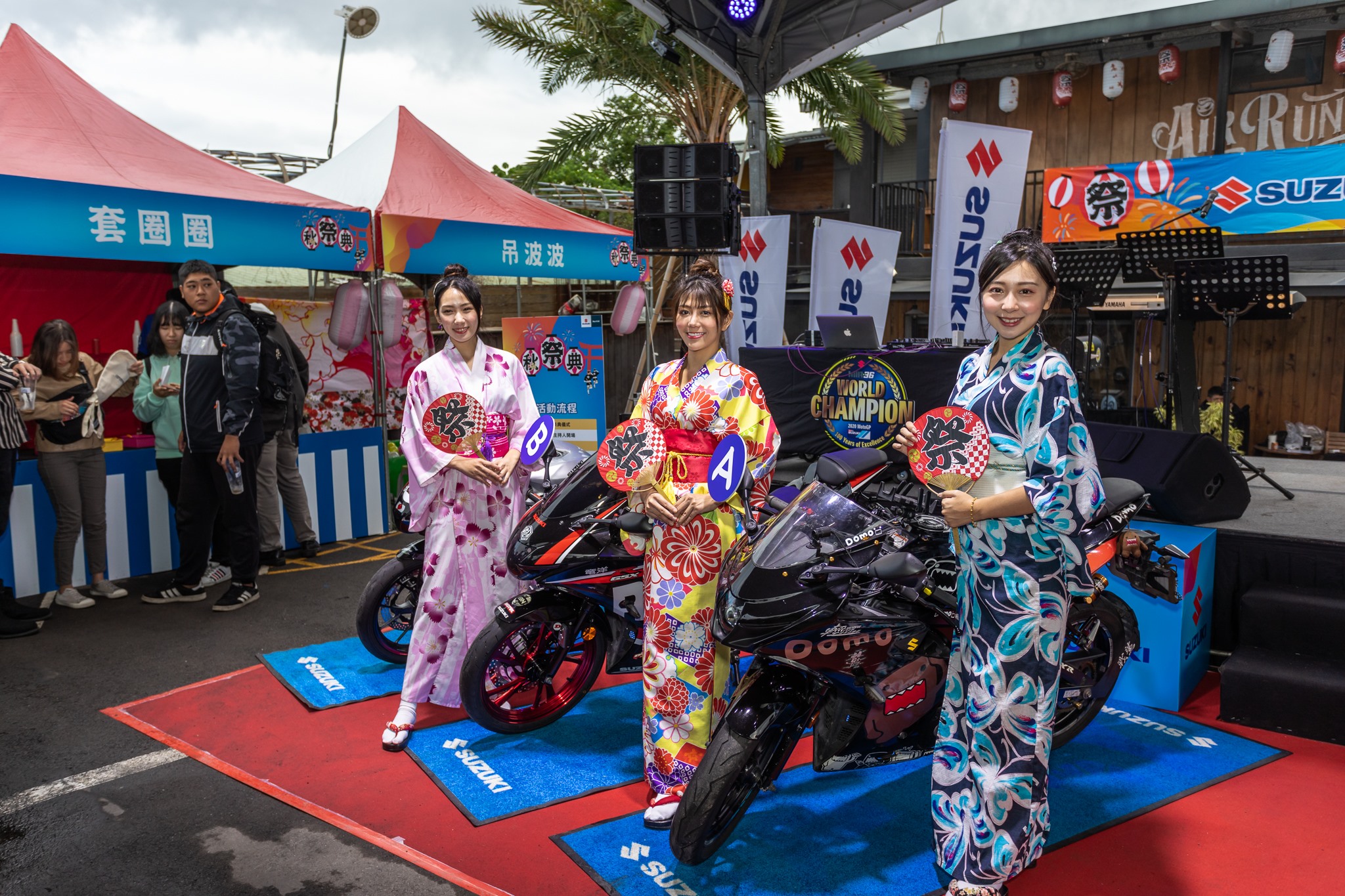 而現場除了表演外,更有好禮摸彩,除了有協力廠商昇聯電能、Polaroid 寶麗萊行車紀錄器、倍耐力輪胎、SBK、307P防水包以及大千精品所提供的眾多車用部品外,SUZUKI原廠更拿出了許多高單價的MotoGP廠隊服飾、SUZUKI X G-SHOCK手錶、GSX-R1000R模型,而活動的最大獎—Saluto 125更是讓現場的車主朋友們垂涎三尺。