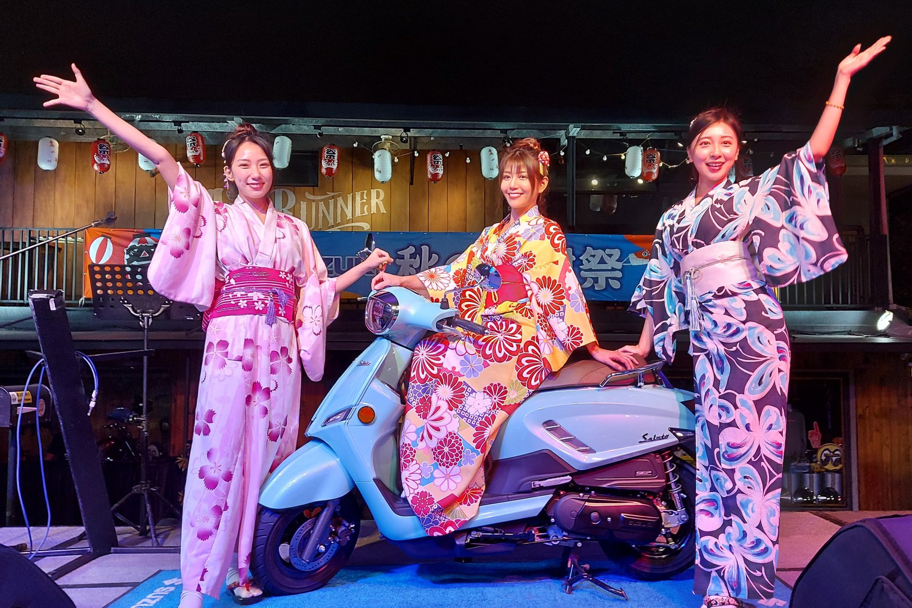 現場規劃烤麻糬、章魚燒等日本風味美食外,還有射飛鏢、套圈圈、吊波波等日式小遊戲外,更有眾多改裝精品的協力廠商到場設攤,現場購買精品亦有折價優惠,可說是讓車友們有的吃、有的玩,更可以趁機撿便宜,同時台鈴最新的電動機車eReady FUN也於現場提供試乘體驗;舞台上的愛樂門樂團的勁歌演出,以及火辣的女DJ,撥放熱門的電音歌曲,車友們各個跟著樂曲手舞足蹈,讓氣氛炒到最高點。