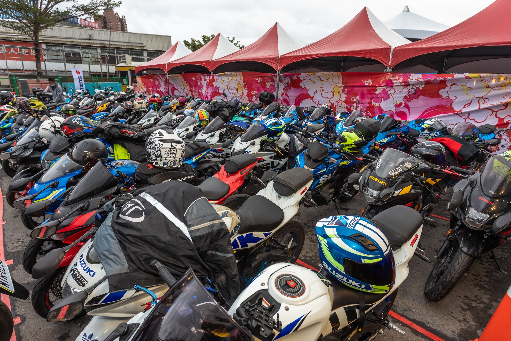 本次於台北北投的北灣俱場所舉辦的秋之感謝祭,一共吸引了近250台車的車主朋友報名,現場除了湧入SUZUKI當家最火紅的輕檔車—GSX-R/S 150外,甫上市的日義混血速克達Saluto 125也前來參與,除此之外大大小小的速克達,以及大型重機,齊聚一堂,更彰顯SUZUKI大小共榮的強大氣勢。