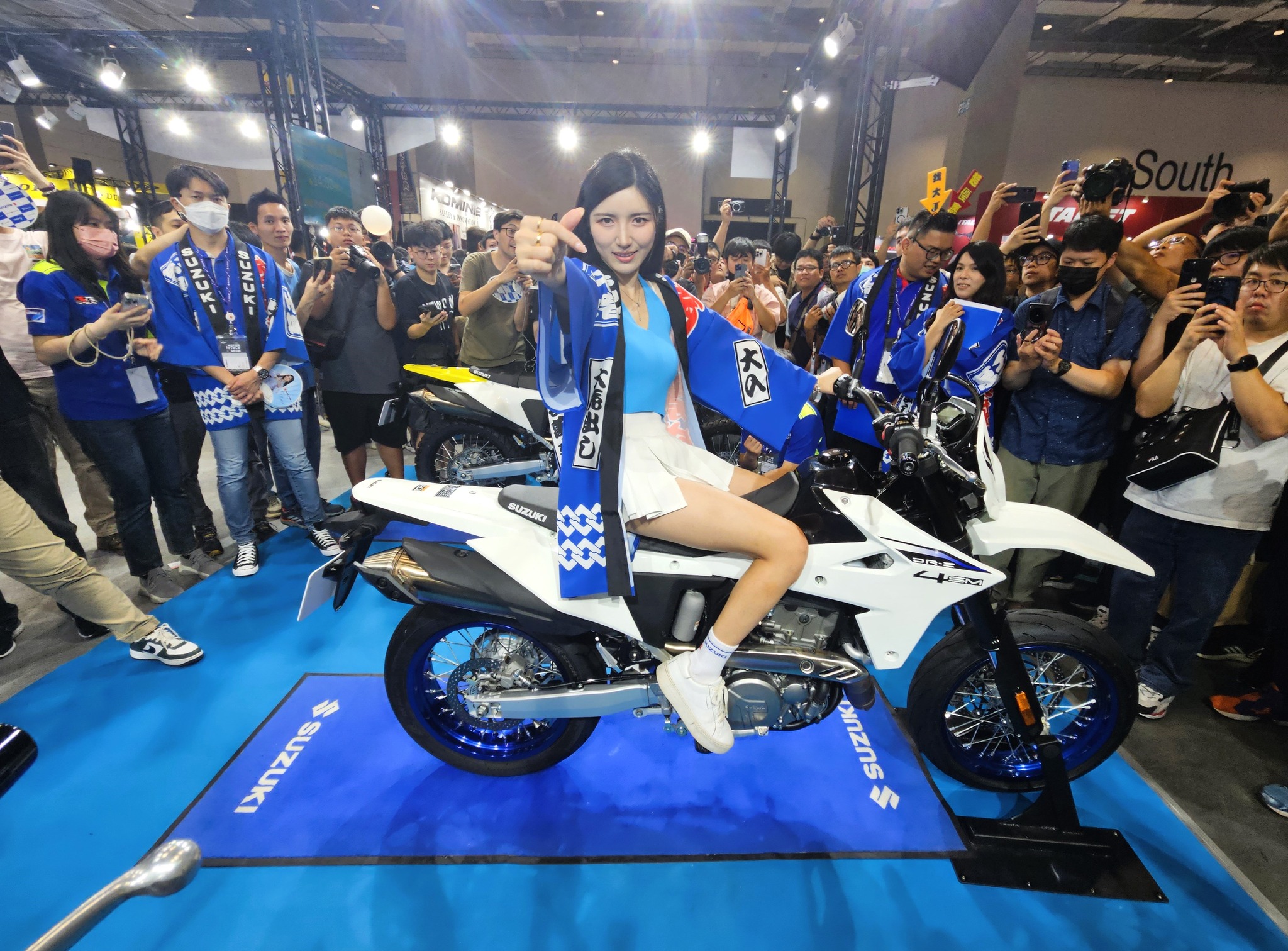 此次展區也同步展出話題焦點——與經典格鬥遊戲《快打旋風》合作的限量特仕車「GSX-8R Tuned by JURI」,南珉貞更親臨車前合影,掀起車迷與遊戲迷的拍照熱潮。
