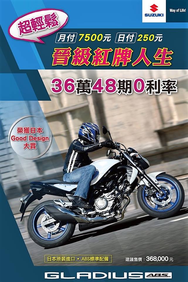 你知道夢想成真來的太突然、太容易是什麼感覺嗎?! 日付$250 輕鬆入主GLADIUS 650, 一切就是這麼的簡單! 讓你在迅速成為街道上的焦點! 中量級紅牌首選, V-TWIN低轉高扭最佳入門車 【GLADIUS 650 ABS】