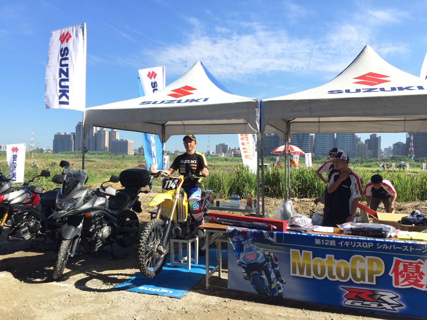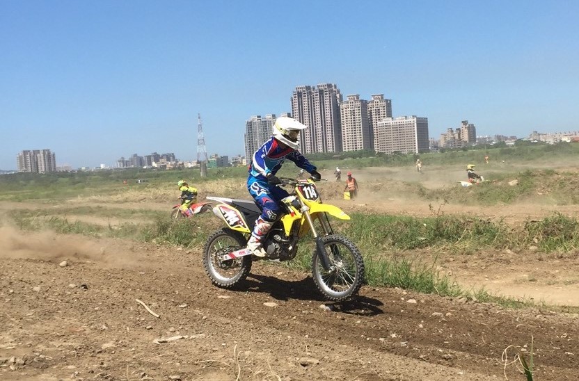 經過激烈的飛奔,在滿天塵土飛砂中,台鈴工業的品技部經理 金子 博之,今天騎著RMZ250共同奮戰群雄後,