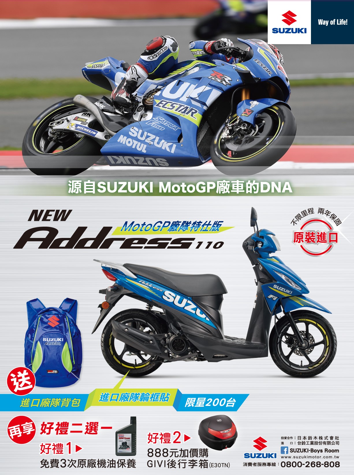 讓Address110擁有SUZUKI MotoGP廠隊的賽道基因!